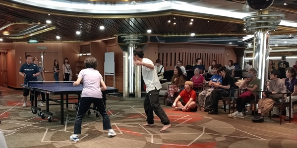昨日から体調が悪く(喉の痛み、熱)薬飲んでの原則休息日。乗船初日に予約した船内美容院、薬でフラフラですが何とかカット終了。ラインで食事を持ってきて、とか連絡をしたそうですが、ラインをチェックせず見逃しました。飲まず食わずのため、気の毒にヨレヨレでレストランまで行ったそうです。午後に吉岡さんの講座受講して夕方まで安静。
