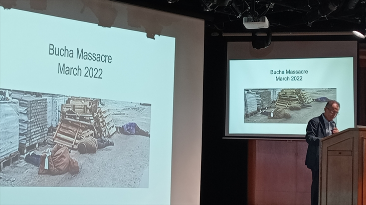 川崎哲さんからウクライナ建国の歴史、ヤスナさん・アヤさんから昨年の航海でウクライナ女性が乗船した時の話がありました。「ウクライナの今(ロシアの軍事進攻から3年目)」タイトルにある説明を期待していましたが、少し残念でした。