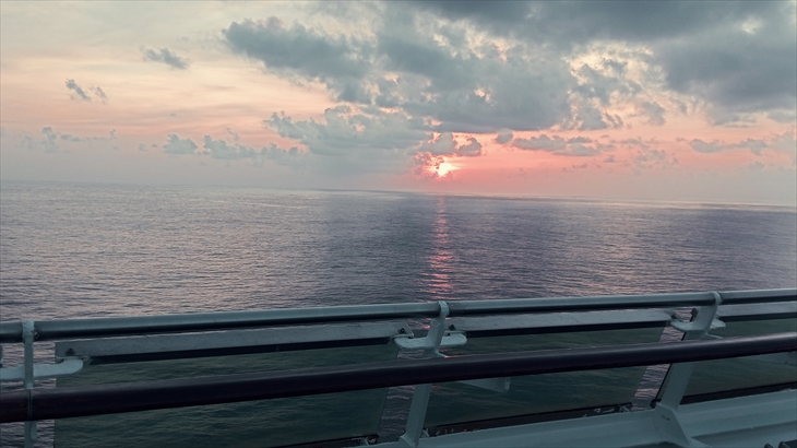 朝食は食事を終えるまでは集中。その後のお茶で話に火が付きます。今日は国際電話や船内WIFIで話が弾みました。