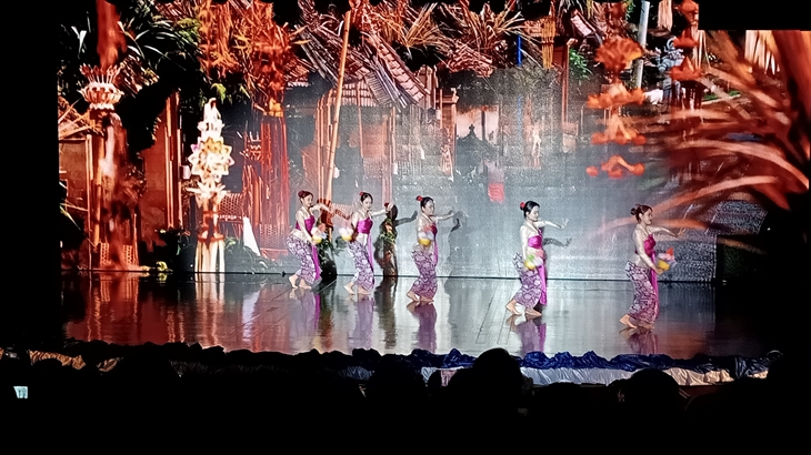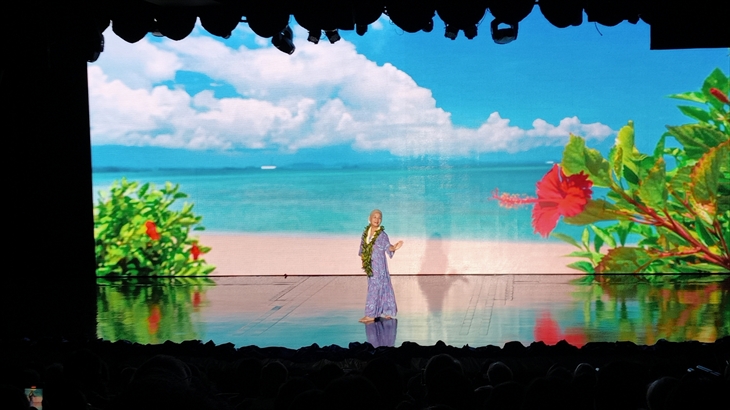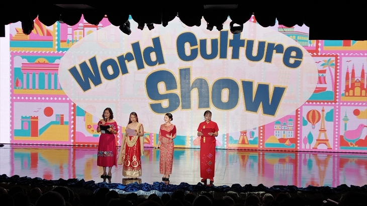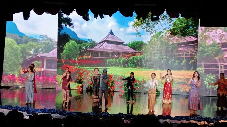 16時から7階プリンセスシアターで開催されたワールドカルチャーショーを観劇。歌やダンスが披露されましたが、芸達者祭で一度見たことのある内容です。最後に、お揃いの民族衣装で登場した女性クルーはバリダンスを披露しました。忙しい間に練習したのでしょうね。拍手喝采でショーは終わりました。