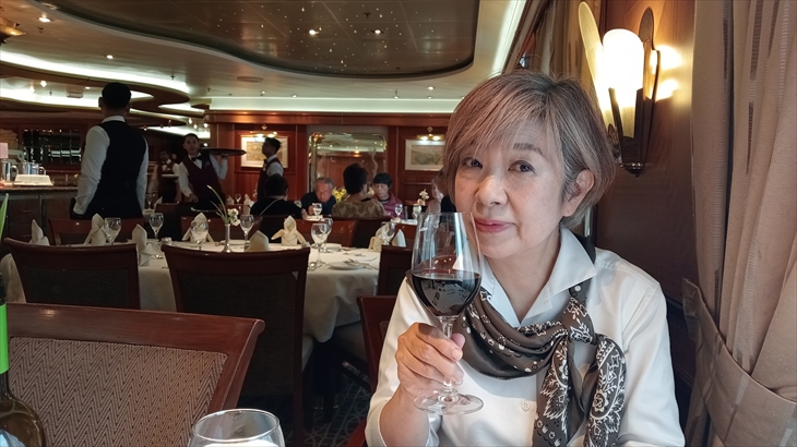 19時30分から12階プールサイドで開催される星空シネマ「あまろっく」会場の様子を見に行きました。皆冬装束にプール用のタオルを体に巻き付け、上映を待っています。寒そうなのでこの映画は後日家で見る事にし、レストランに向かいました。日没は21時14分、窓際に案内され海を眺めながら赤ワインで乾杯しました。