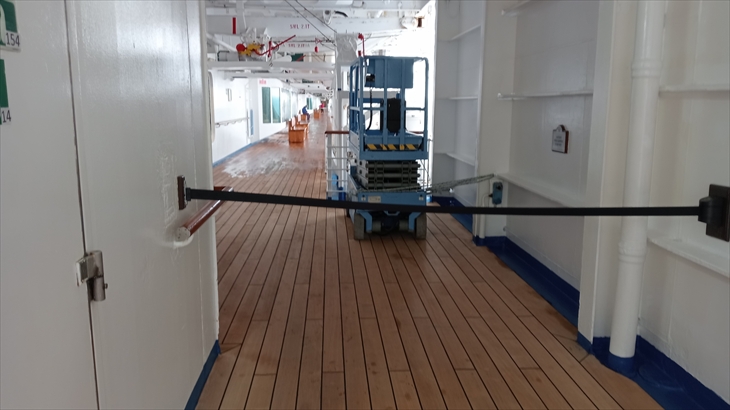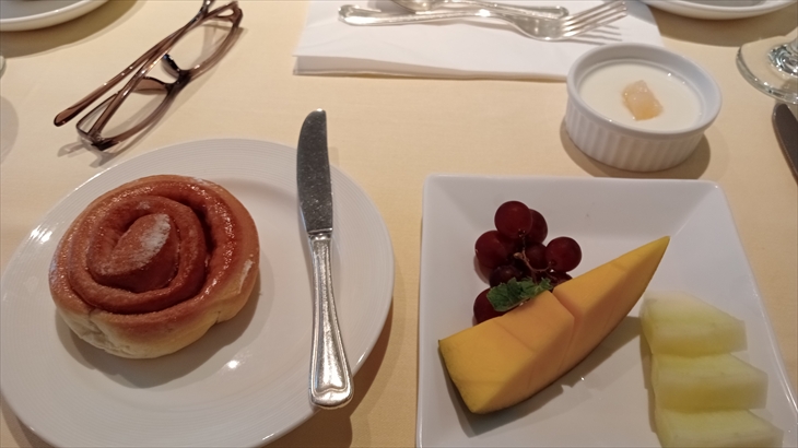 健康サルサの後のデッキ一周は波高く途中通行止め。6階の洋食朝ごはんは相席4名、シニア男性がニューヨーク見学の話を延々としており、その相手をしている男性が親切な聞き役なので話が止まりません。一度私達に話を向けてくれ、何とか流れを変えようかと試みましたが、ご自分の話に戻ってしまいます。でも良い方なんです。しかし、話相手の男性に申し訳ないと思いながら、先に我々は退席させて頂きました。