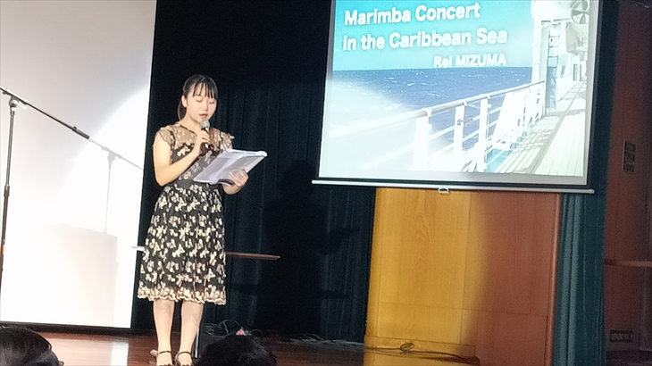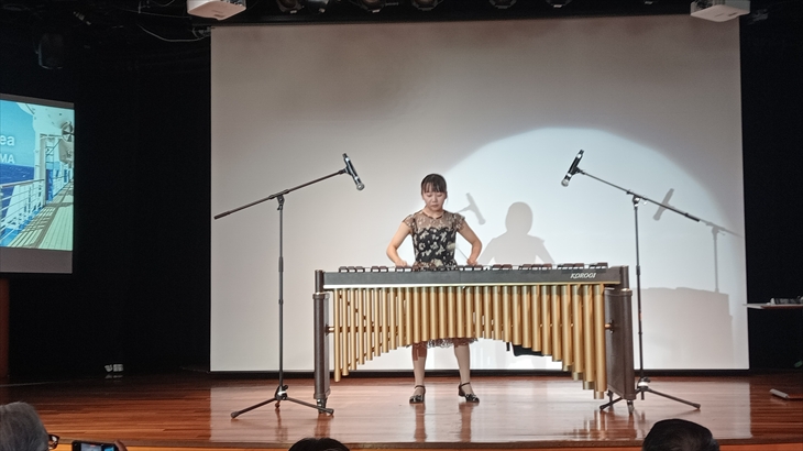 18時10分から天才中学生(水間レイさん)のマリンバ演奏会です。これまで、芸達者祭などで共演していましたが、今回は単独の自主企画です。演奏する曲を日本語と英語で紹介しながら、楽譜を一切見ないで数曲演奏します。「学校は?」と聞きたくなりますが、天才の将来には野暮な質問ですね。
