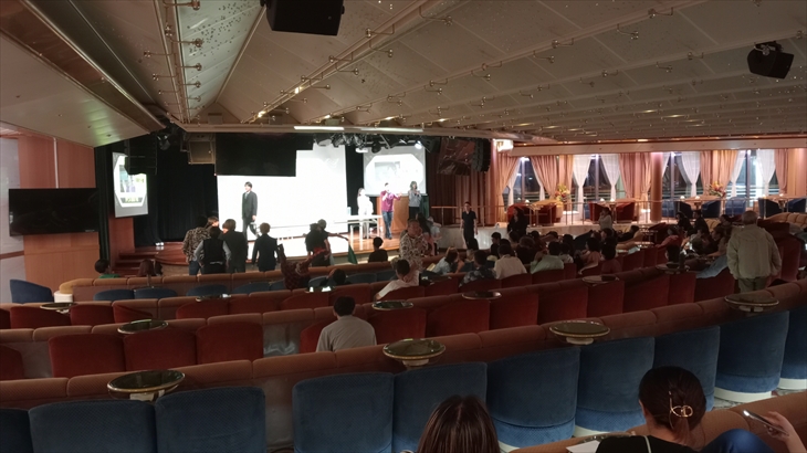 22時からピースボート事務局の方の若者企画、はやり番組のパクリ?センスの良い回答、イマイチの回答もあり楽しく観覧しました。途中、少し寝たけど。そして23時ころ部屋に戻り就寝しました。