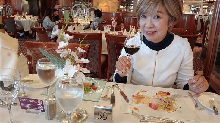 デイナーは洋食レストランで赤ワイン。毎回ワインを頼むので係の方は名前を憶えてくれた様です。