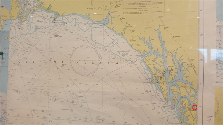 9時頃インサイドパッセージの水先案内人が本船に乗り込んだ模様。形跡の船をキャビンのベランダから見ました。健康サルサが終わりデッキにいた方に聞いてみてました。「何もまだ見ていません」と皆さん言います。