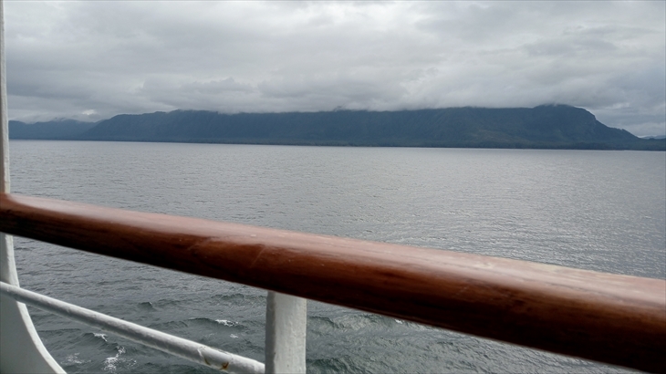 インサイドパッセージとはアラスカ(東南アラスカ)に位置する多島海の島々を繋ぐ「内海航路」です。今日はホエールウォッチングを行う一日。「朝6時から18時までが見ごろ」と昨日の講座での案内だったので、朝早くからデッキには多くの人がいました。