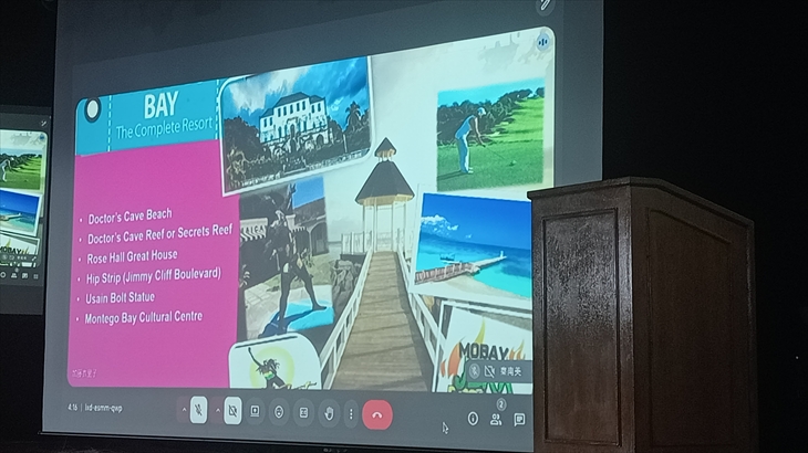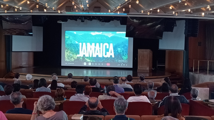 駐日ジャマイカ大使がジャマイカの歴史、文化、ことば、国際関係への貢献、スポーツ、食べ物などの紹介とモンテゴベイのお勧め観光ポイントの紹介です。メイン会場はプリンセスシアター。同時中継のビスタラウンジで受講しましたが、動画・音声が再生不具合があり残念でした。モンテゴベイのお勧め観光ポイントだけが少し参考になった程度です