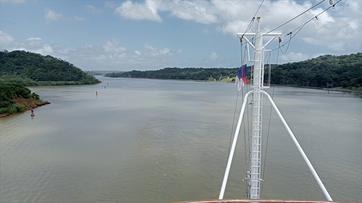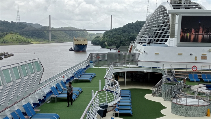 2025年7月6日(火)晴れ時々曇り。本日のメインイベントは大西洋から太平洋を貫くパナマ運河航行です。寄港地クリストバルを4時出航、懐かしの太平洋には15時頃再会予定です。