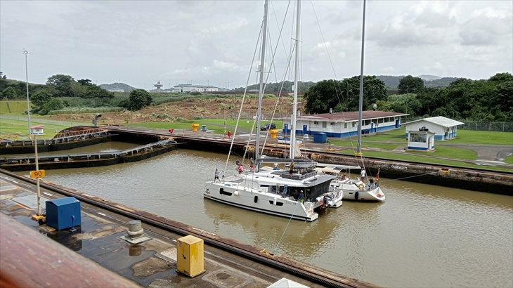 ガツン閘門は3つの閘室から構成され、太平洋側からガツン湖へ船舶を移動させます。その最初の閘室へ入るのが6時10分頃