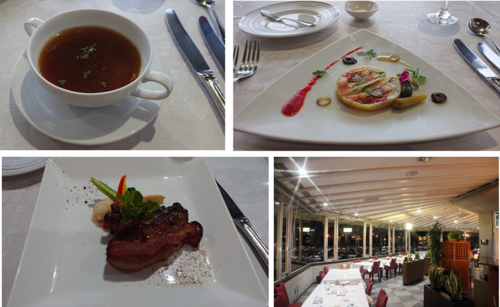 夕食はぶどうの丘のレストラン、グラスワイン片手に美味しくいただきました。