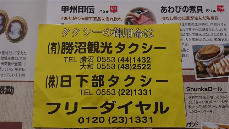 勝沼から甲府まで電車で移動、甲府は2021年信玄公誕生500年の街おこし。信玄公ゆかりの地周遊をリーズナブルに行う観光タクシー(第一交通)、2時間(3000円)コースを4時間(6000円)コースに変更していざ出発。担当頂いたドライバーは橋本さん。心なしかダンディ板野風。まじめで勉強熱心なドライバー。岩間家の甲府ルーツはタクシー会社に関係していた模様、何か縁があったのでしょうか・・・