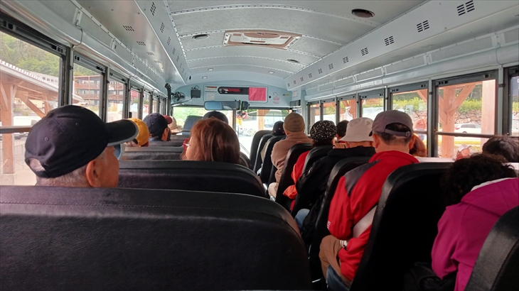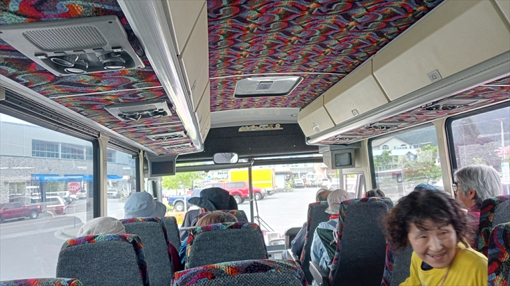 PBはシャトルバスの混雑による帰船リスクを考えてか、港周辺の見学を推奨しています。チャット仲間の動向も参考にして、観光ルートは寄港地付近の散策と決めました。しかし、当日の朝にシャトルバスの運行状況を確認して方針変更。昨日の藤原さん講座では「バスは小型、街には絶対に行かないでください」と◯さんが帰船リスクを無責任に力説。