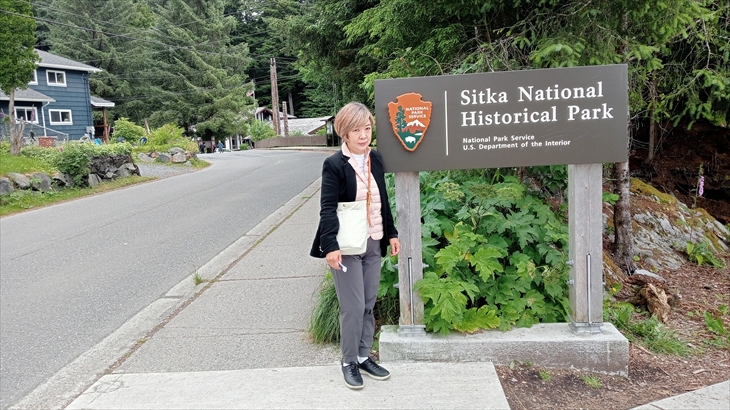 クルーズターミナルからシトカの街まで約10Km、8時42分にシトカの街に到着。バス停から徒歩15分程のシトカ国立歴史公園に向かいました。