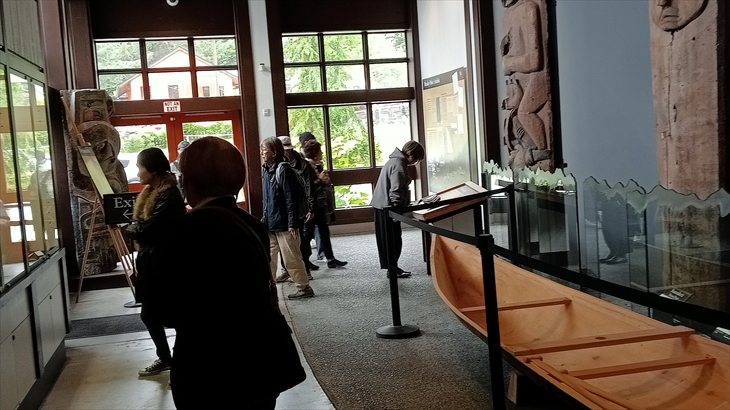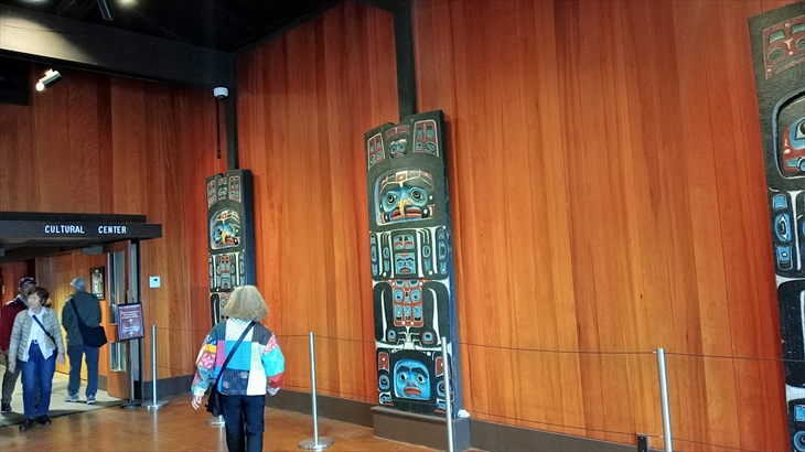 国立歴史公園の博物館では先住民がロシアと戦った映画上映や彼らの彫刻などの展示、3つのトーテムポールがありました。