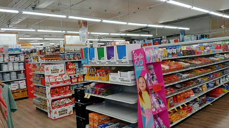 街中に向かう途中に壁画が素晴らしいスーパーに立寄りました。商品は綺麗に陳列されています。