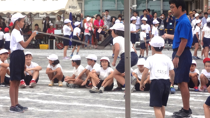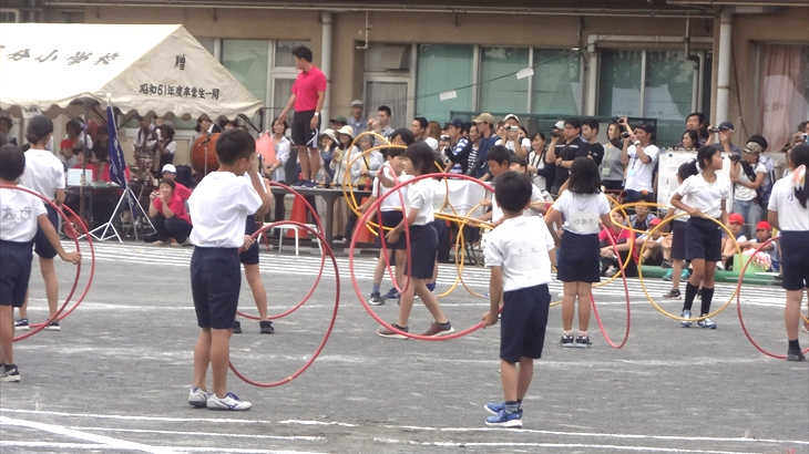 いったん家に戻り、9時ころ出かけました。結構上手にフラフープを操っていたダンス、チームに分かれての縄跳びは、目標と結果の感想を発表。未就学時の種目に2歳の孫と長女が出場などを午前中に見学し、お弁当タイムになりました。