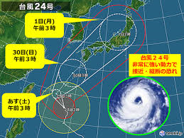予報では29日(土曜)は秋雨前線を刺激して雨模様、30日(日曜)の深夜に関東地方直撃です。