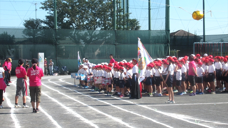 早々に延期が決まった運動会の空模様は快晴で心地よい日よりになりました。子供達は元気一杯に校庭に集合し運動会が開催されました。