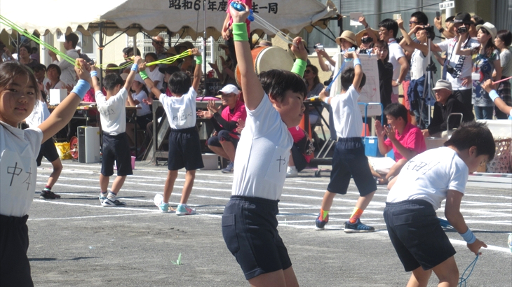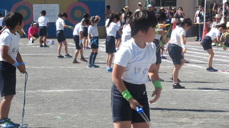 我が孫の最初の出番は、縄跳びを使った集合ダンスの「夢に向かってTRY ジャンプ!」です。夏休みの宿題の一つが縄跳びだったのはこれで納得です。