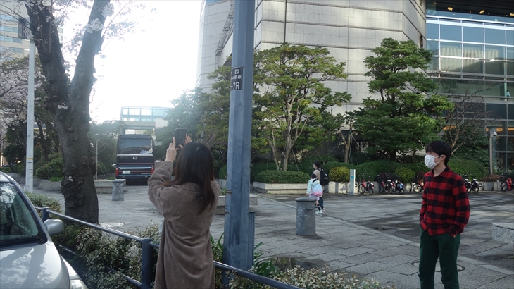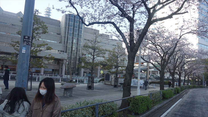 子供たち春休みの3月28日(金)はお昼過ぎまで雨降り、夕方から晴れてきたのでサト達と車で桜見物に行きました。最初は横浜ミナトミライの桜通り。ランドマークタワーと日本丸を挟む通りの両側にある桜がまだ6分咲きでした。