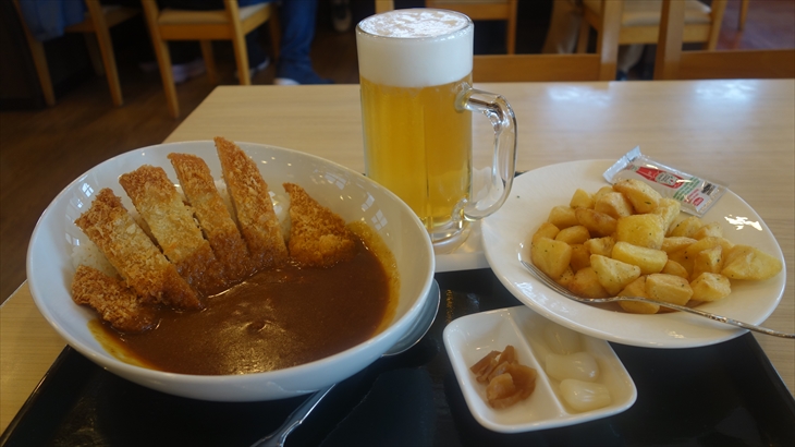 2月25日に利太朗くん達と行った桃源台のビューレストランで生ビールとカツカレーにて一人お祝いです。