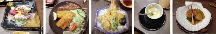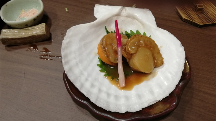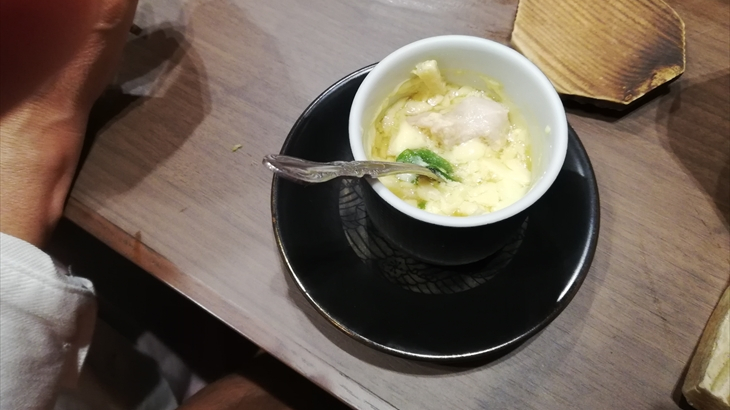 お通しのブリのアラ煮つけを食べながら、お店でさばいたアジフライ、天婦羅の盛り合わせを追加。しばらくして茶碗蒸しと帆立の煮つけをお願いしました。それぞれのお料理は手作り感あり・・・