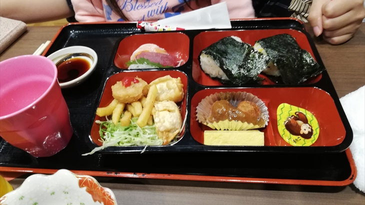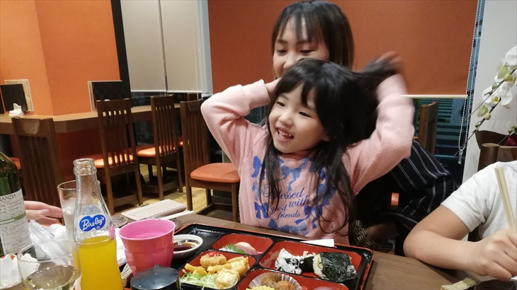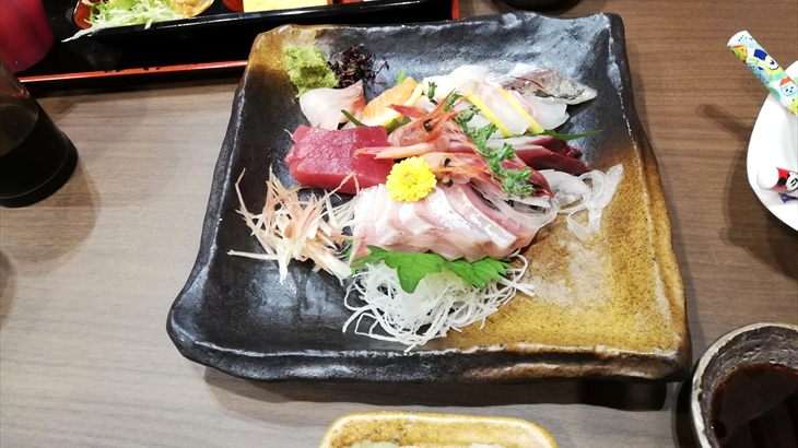 最初に注文したのは飲み物、お子様御膳、お刺身の3点盛りです。お子様御膳は3歳の孫娘用に注文したのですが、孫娘用に配膳された時、お兄さんも食べたそうだったので追加でお願いしました。