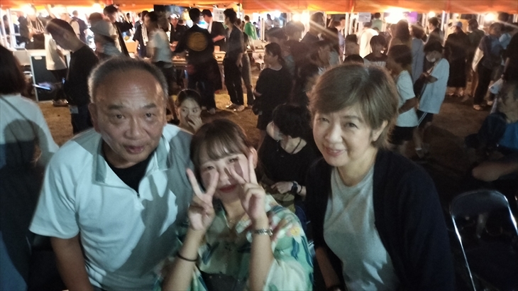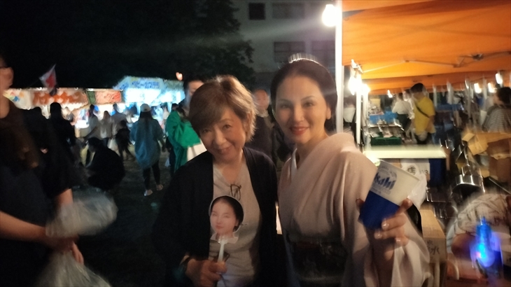 15時45分、すすき祭り会場に到着するとバスで席を譲った夢路さんファンのおじさんに芸者バーのところで遭遇しました。今日のすすき祭りは最後までこの方にお世話になりました。
