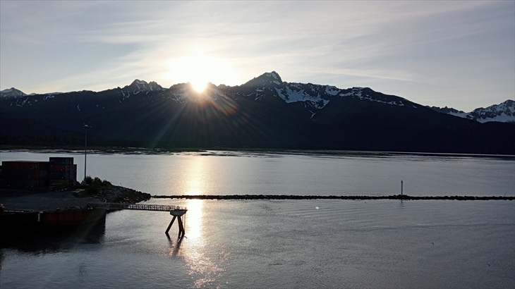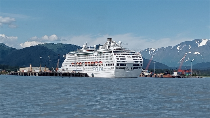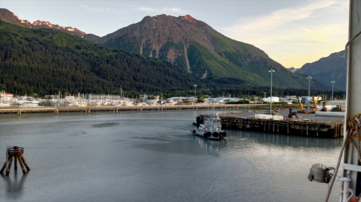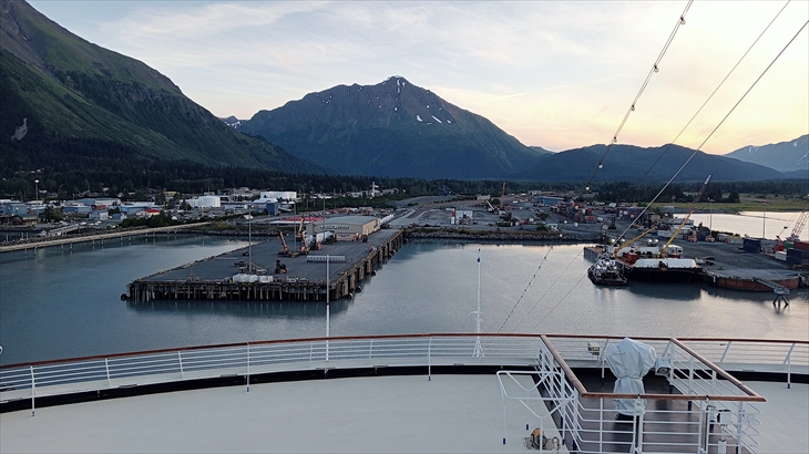 短い夜が明け、朝5時ころ船はゆっくりとスワードの街を目指し航行しています。wifiも楽天モバイルは繋がりました。そして朝6時、船はⅤ120ピースボート世界一周の旅の最後の寄港地スワードへ予定通り入港しました。