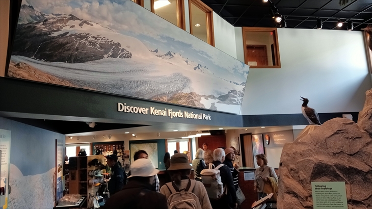 アラスカ鉄道駅から10分ほど歩き、午後の遊覧観光集合場所を確認。そこの隣に国立公園観光案内所がありました。ここでは最後の寄港地マグネットを購入。アラスカの歴史、環境などを解説する映画が上映されていました。映画は専門的ですが分かりやすく質の高いものでした。最も英語なので感覚ですが・・店内は整理され、置いてあるグッズも内容が濃く、素晴らしい観光案内所です。感心しました。
