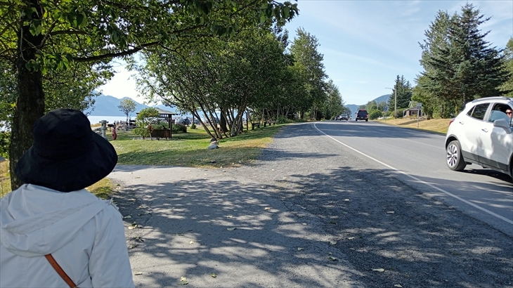遊覧観光集合場所には11時少し過ぎに到着。チェックイン手続き後、時間があるので近くのスーパーや夕食の候補店を覗いていた所、フィッシュマートで鮭をさばいている場所に出会いました。撮影許可を得、見学していると、突然今さばいた鮭の新鮮なイクラを、ハイ!と差し出され、有無を言わさず握らせてくれました。一瞬動じましたが超笑顔に、NOの返事はあり得ません。サンキュー!と言って素手で握りしめ、取り合えずイクラを水筒に保存しました。そして、遊覧観光集合場所まで戻りました。