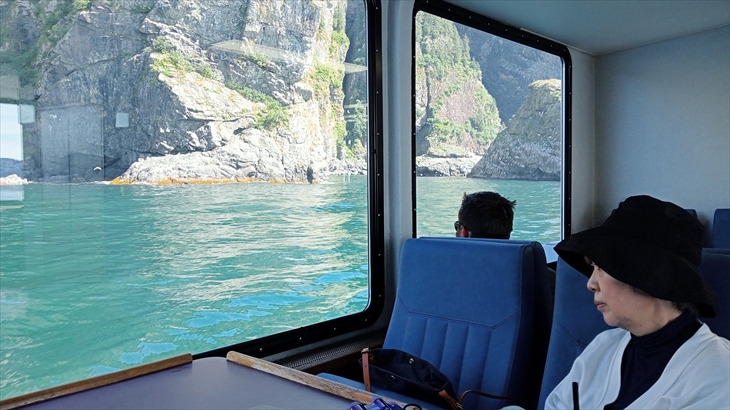 船内の乗船率は6割程度で余裕がありました。16時位になると疲れているのか寝ている人が目立ちます。そんな中、船の近くまで近づいてくれたラッコも見学しました。船は停泊すると大いに揺れますが、船旅に慣れてくると平気になります。すごいものです。