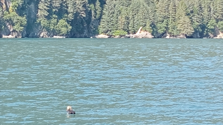 10時30分、アラスカ水族館の近くのMile0というトレイルの出発地点に到着。ラッコがあちこちで泳いでいます。写真撮影をして遊覧船集合場所まで戻りました。