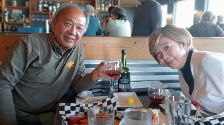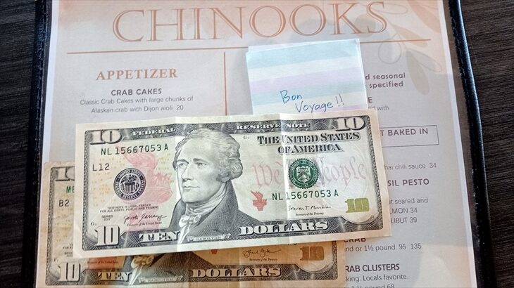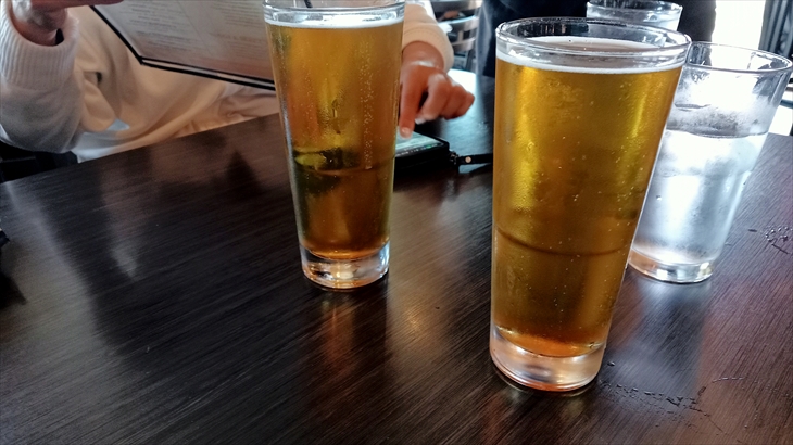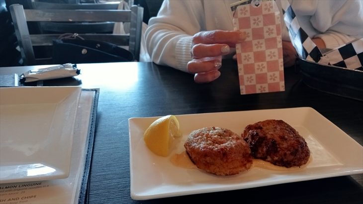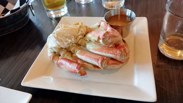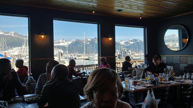 寄港地での最後の食事は海鮮レストラン「CHⅠNOOKS」です。まずビールで乾杯し、姪っ子Mちゃんのお餞別でクラブケーキ(カニハンバーグ)を注文しました。アラスカの名物料理でカリッとして美味しい。