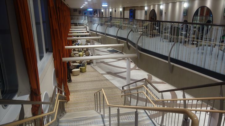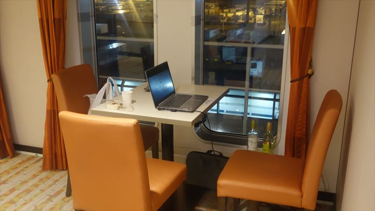これから就寝予定時間の9時ころまで食事や御風呂を楽しむために、いつもの場所を確保。船は定刻の5分前に出発しました。