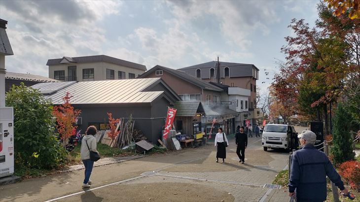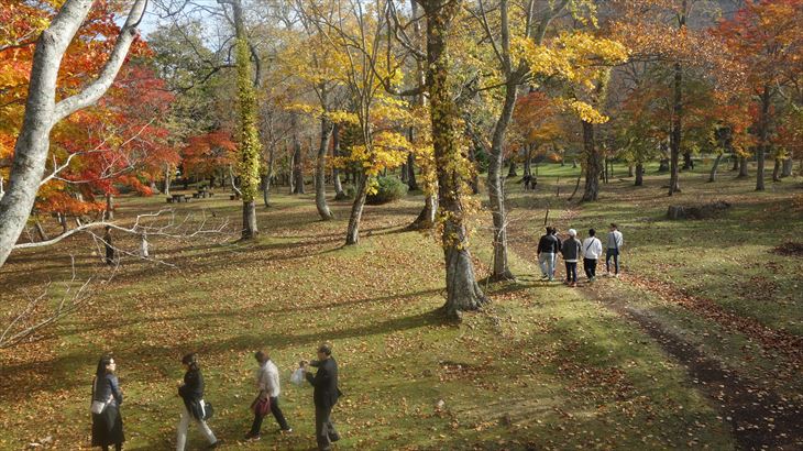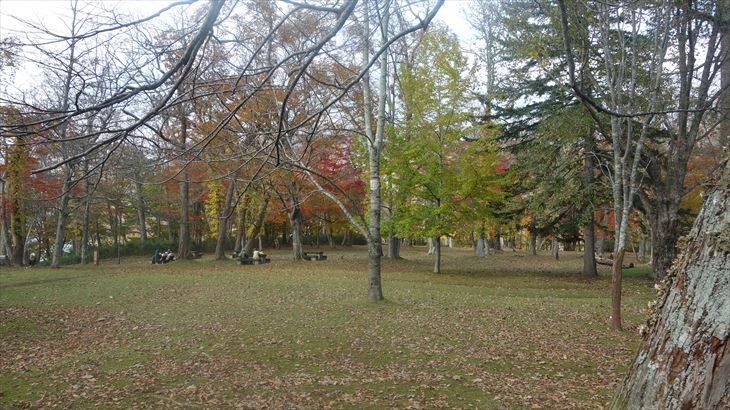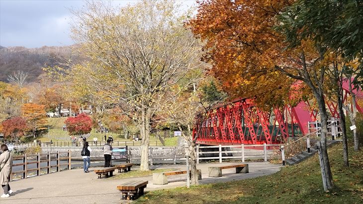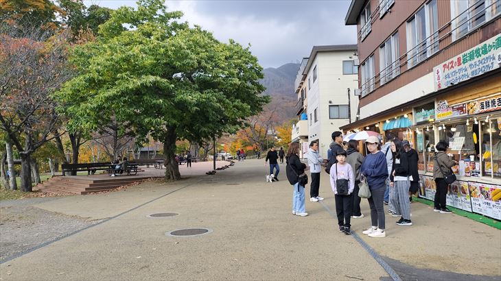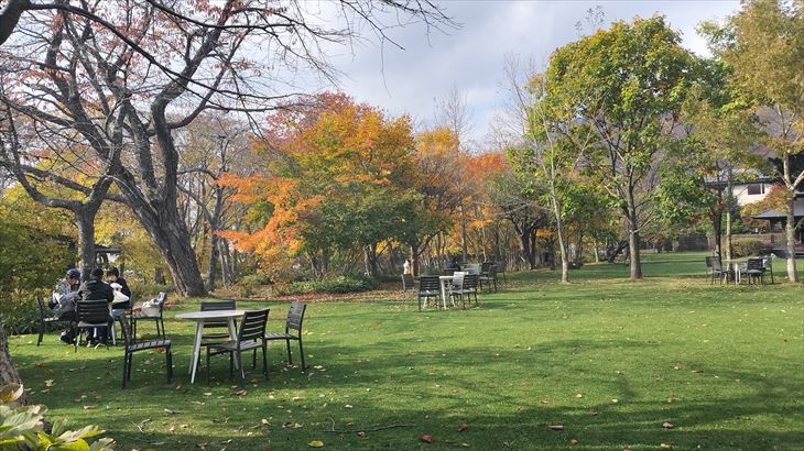 支笏湖温泉街は公園のようで紅葉が素晴らしい