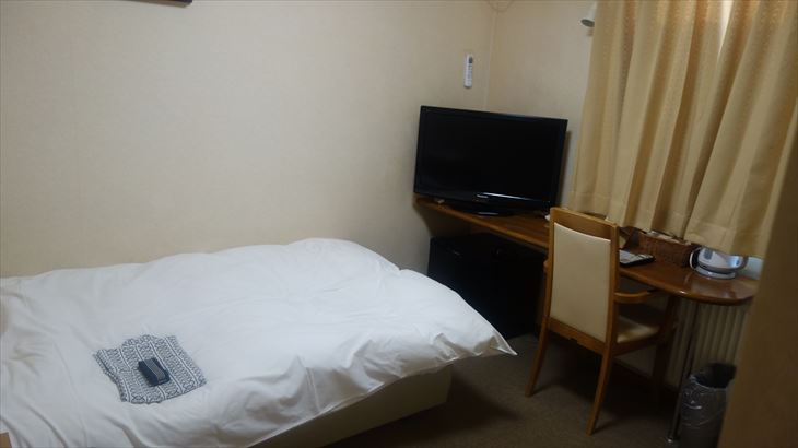 お部屋は洋式で機能的には問題ありませんが、窓からの景観は隣の家なのでカーテンは閉めっぱなしにします。景観まで1万円以下の2食付きで期待してはいけませんね。