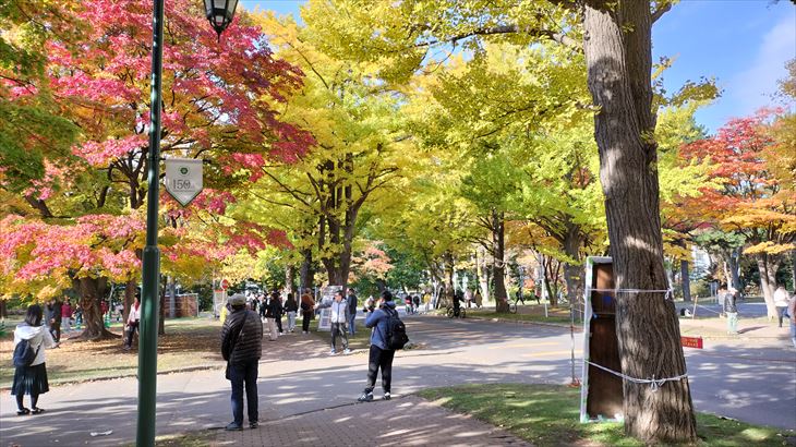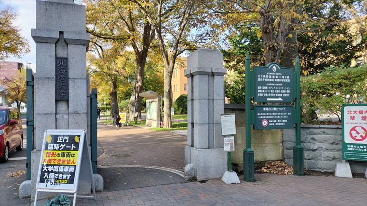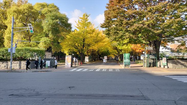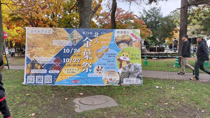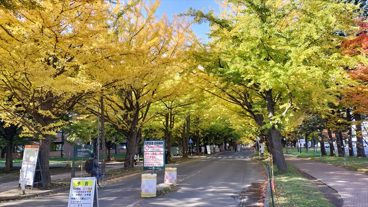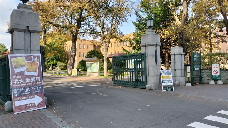 なんと、今日は北海道大学で毎年10月ごろの銀杏が綺麗な時期に行うお祭り「第13回金葉祭」が開催されていました。銀杏並木の門にはたくさんの方が写真撮影してました。学生たちはまだ準備中でしたが昼頃からもっと賑やかになってくるのでしょう。