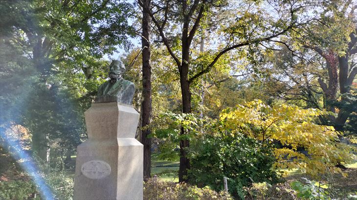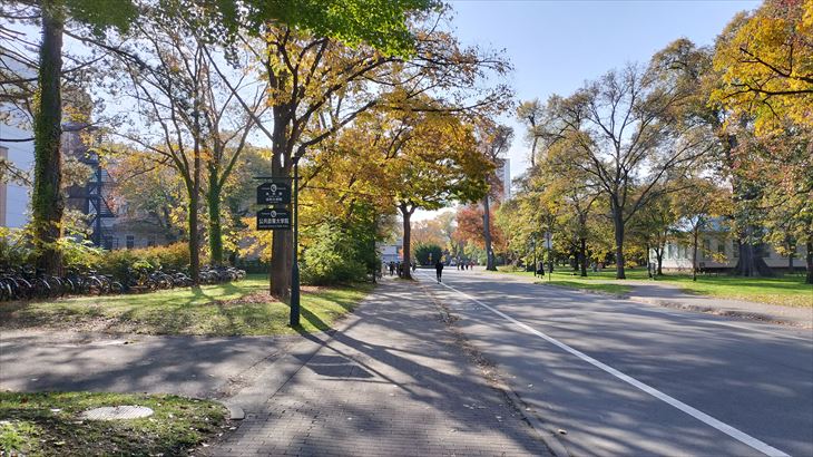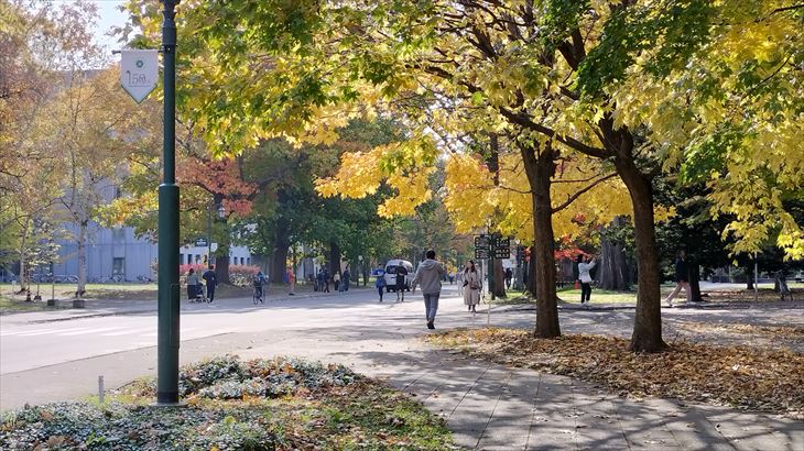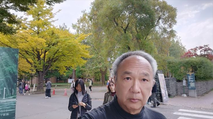 銀杏並木の門から銀杏並木を抜けてメイン通りを歩き、クラーク博士の像を経由して正門、そこから総合博物館に戻るのに1時間。これでも敷地半分くらいの散歩です。
