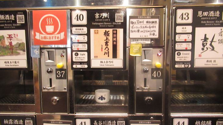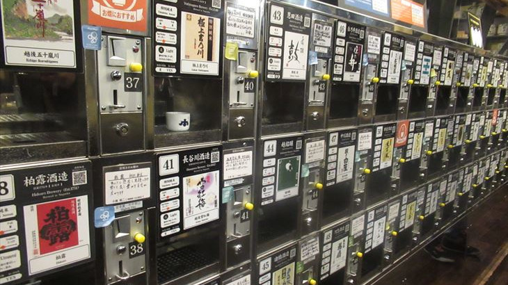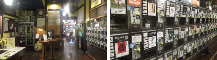 新潟駅で駅レンタカーを返却したのは12:57。新潟駅のCoCoLo西館にある「ぽんしゅ館」に向かいました。ここは、越後新潟にある全酒蔵の日本酒を500円でお猪口5杯分の唎き酒ができます。日本酒は自動販売機で93種類のあり、そこはレトロ感満載の場所でした。