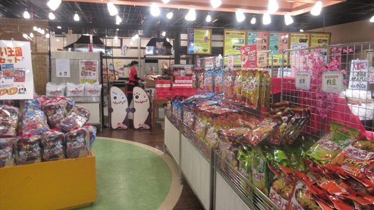 休憩テーブルでお茶しながらそのお煎餅を食べ、お土産見学をしました。