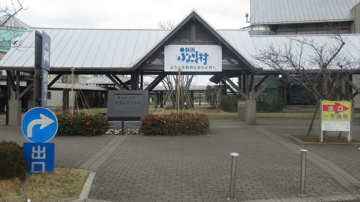 次の訪問地は新潟市内の「ふるさと村」、「道の駅」と大きな売店・食堂施設があります。通常なら団体バスが乗り付けお土産購入、お昼ごはんで賑わってるのだと思います。サックと見学して、車の中で食べる桜鱒のフライを購入し新潟駅に戻りました。