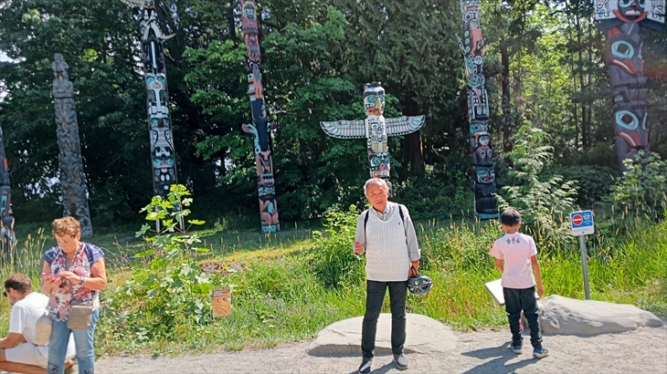スタンレーパークのトーテムポールは観光スポットです。記念写真撮影してお土産のマグネットを購入しました。後で別のお土産屋さんにも寄るつもりでしたが結果は時間切れ。メープルシロップを買えなかったのは少し残念。