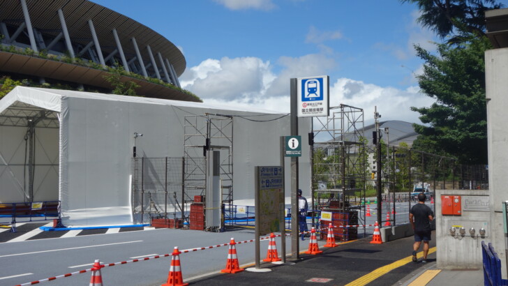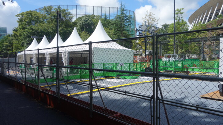 オリンピックスタジアムの見学は可能なので一周してると、10時30分ころ帰りの呼び出し電話、約10分くらいお待たせしてしまいました。選手村には11時ころ到着、本日のお仕事はこれで終了・・・・