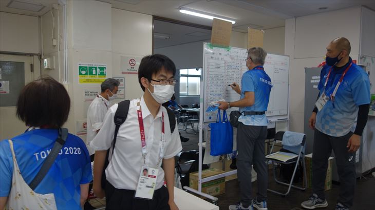 この日のシフトは8時~17時。朝7時30分に到着して待機待ち。8時30分ころモンゴルの方を柔道最終日に開催される新競技(混合団体)見学のために柔道の聖地武道館へ9時30分集合予約。