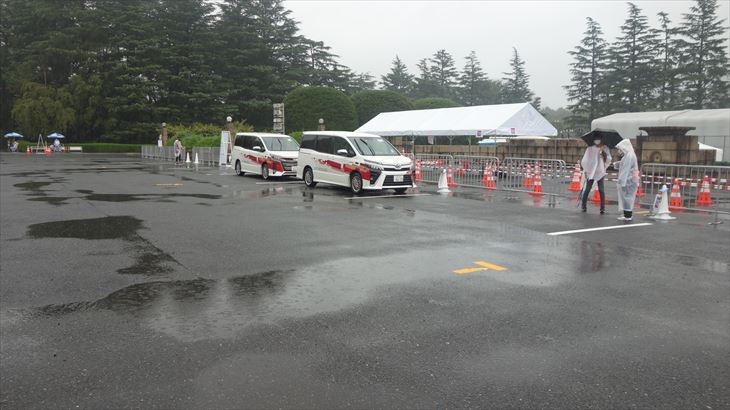 初日と同じビックサイトに朝一番で配車、グランド・ニッコーホテルから日本人女性1名を海の森水上競技場。ここから有明テニスの森⇒築地デポ⇒グランド・ニッコーホテルで待機指示でしたが、ここに到着するとテレビカメラマンが準備中。VIPが来るというので追い返されました。