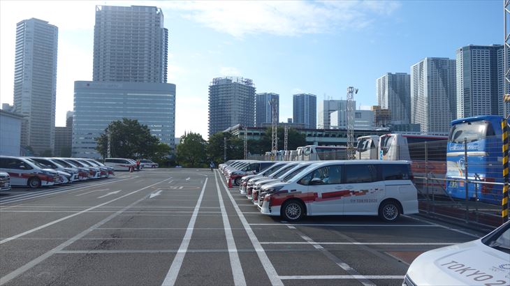 本日のシフトは6:00~13:00。もう少しやりたいと思い、オリンピックポータルサイトの研修予約から13:00~18:00を追加。相鉄東京ベイ有明から浦安の東京ベイ東急ホテルでパッリしたスーツ姿の日本人1名を9時からの予約でオリンピックスタジアムまで送りました。閉会式関係者?、東京ベイ東急ホテルでは8時出発のディズニーランド行きバスを待つ若い女性たちの行列がありました。