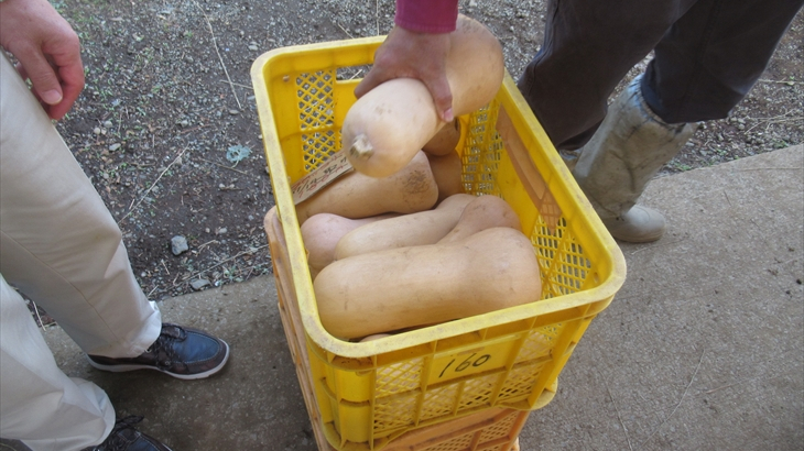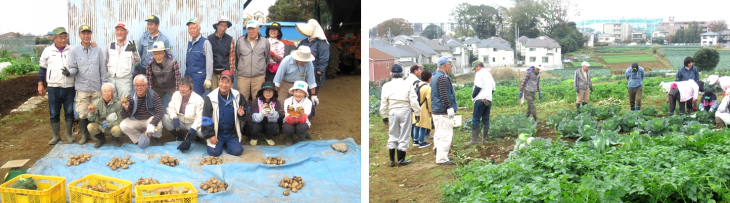 我々(3名)が到着する前にジャガイモは収穫済、キャベツの後は大根らしいです。その作業風景や収穫物(ジャガイモ)との集合写真などを撮影させて頂きました。