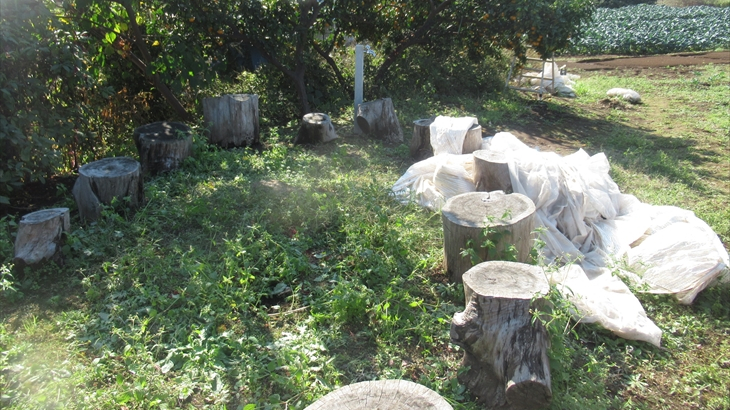 白い丸椅子を木陰に並べて頂き、かなっぱ畑の会の会長さんと我々5名で取材がはじまりました。